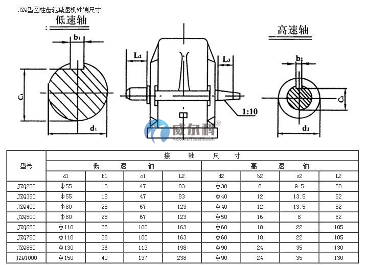 JZQ齒輪減速機(jī)應(yīng)用范圍及結(jié)構(gòu)概況 1、應(yīng)用范圍及優(yōu)點(diǎn): 本機(jī)廣泛應(yīng)用于各種起重、運(yùn)輸、礦山機(jī)械及其它各種機(jī)械中作減速之用。其聯(lián)動(dòng)方式,可用聯(lián)軸器直接聯(lián)動(dòng),也可用三角皮帶撓性聯(lián)動(dòng)。 本機(jī)通用性和互換性強(qiáng),維修簡(jiǎn)單,效率系數(shù)為0.94,具有起動(dòng)阻力小,運(yùn)動(dòng)靈活等優(yōu)點(diǎn)。 2、結(jié)構(gòu)概況及主要零部件: 本機(jī)結(jié)構(gòu)型式為兩級(jí)三軸圓柱斜齒水平分割全封式。潤滑油盛于減速機(jī)之內(nèi)部,在主動(dòng)軸和中間軸上設(shè)有擋油板,各軸支點(diǎn)均用滾動(dòng)軸承,其軸向間隙,可用內(nèi)部調(diào)整環(huán)調(diào)整之,本機(jī)上部有一檢查蓋,下部有油標(biāo)指針和排廢油用的油塞。