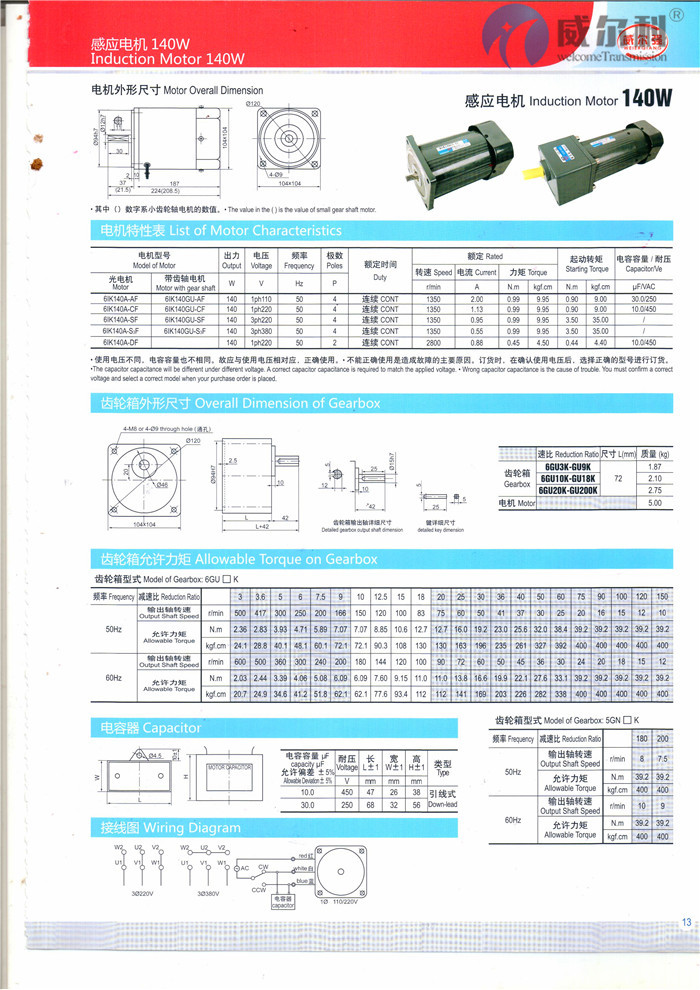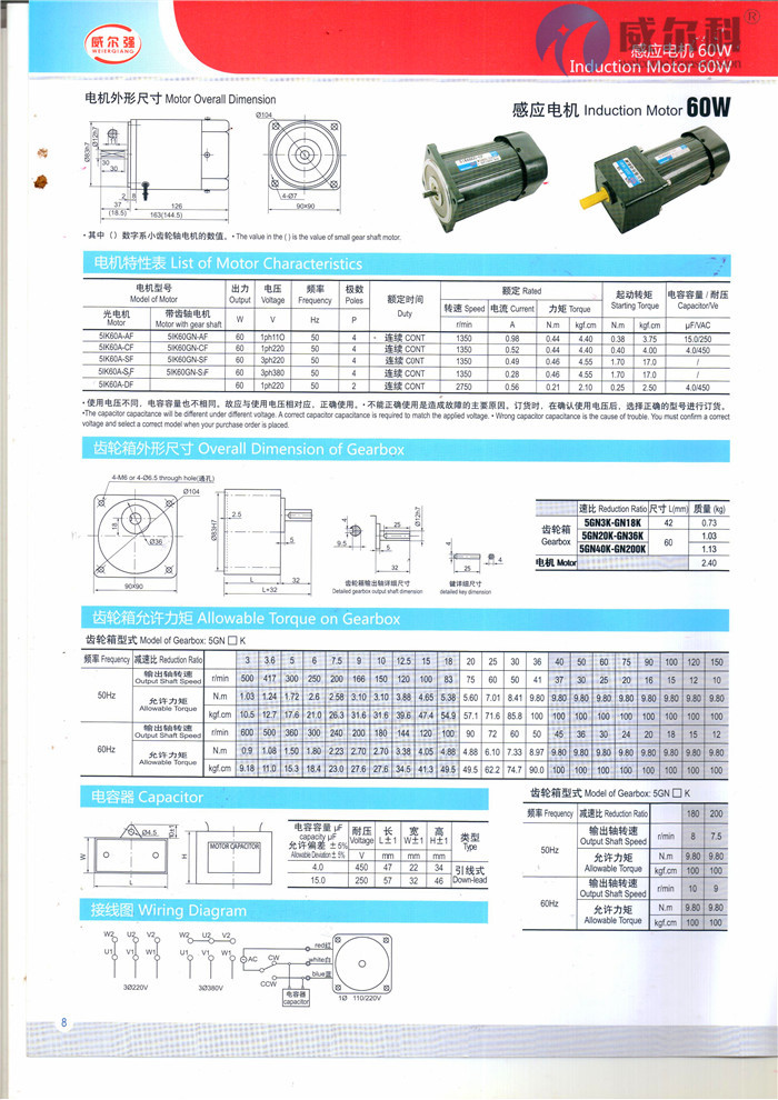 微型電機功率6W到150W,減速比從1:3到1:2000。有單相感應(yīng)馬達,三相感應(yīng)馬達;連續(xù)運轉(zhuǎn)式,可逆式,制動式;還有永磁直流有刷電機。