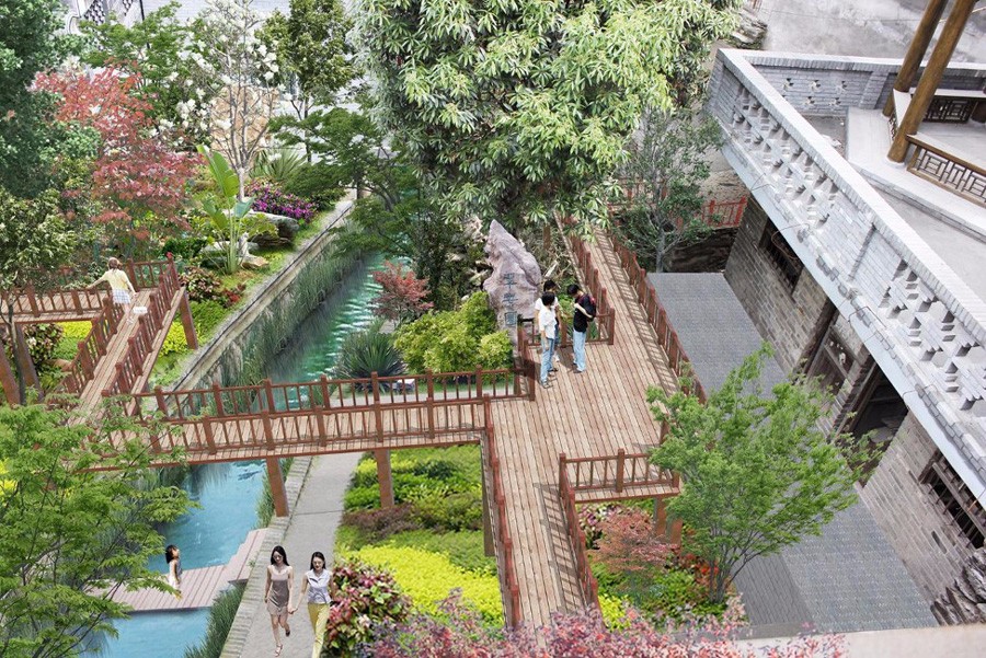 項(xiàng)目概況 :兩軸, 濱水生態(tài)文化體驗(yàn)景觀軸 古道歷史風(fēng)貌提升景觀軸 ;六心, 游客服務(wù)中心、衷家大院、羅家大院 長(zhǎng)春溪澗古橋、北城門(mén)、福音堂