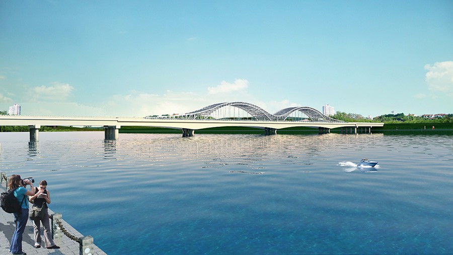 項目概況 :天賜大橋為車行橋,橋梁長度為460m,橋面寬度20m,全橋共3聯:2×40+(55+2×90+55)+2×40;主橋采用現澆預應力混凝土變截面連續箱梁+鋼桁架。引橋采用40m預應力砼(后張)小箱梁,先簡支后連續;下部結構主橋采用花瓶墩、實體承臺和群樁基礎,引橋采用柱式墩、樁基礎。